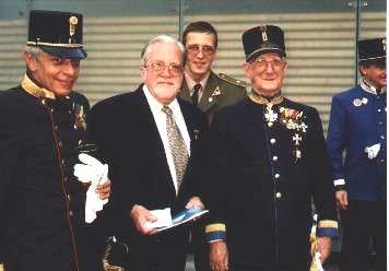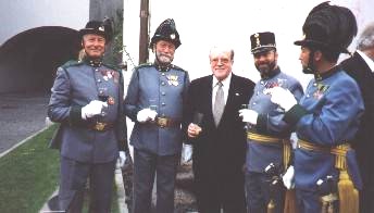 Choir, 40 men strong, in a songfest with the Austrian Choir held in Spittel, Austria. Al is